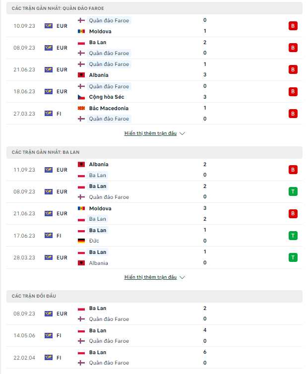 Đảo Faroe đang có một phong độ khá tệ trong những thời gian gần đây. Sau 10 trận đấu gần nhất, họ để thua 6, 3 hòa và chỉ giành được duy nhất 1 chiến thắng. Trong khi đó, đối thủ của họ đang có phong độ nhỉnh hơn đôi chút. Hiện tại, Ba Lan đang có được 4 chiến thắng, còn lại là 1 hòa và 5 trận thua.